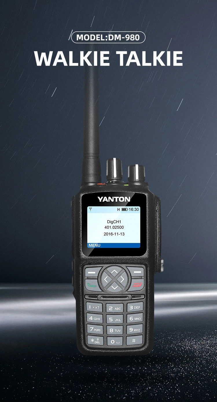 compatible and stable, DMR digital two-way radio,DM-980 handheld digital radio offers a simple communication solution with 1.77" colour screen, navigation keypad, emergency button, ideal for users operating in manufacturing, facilities management or education environments.